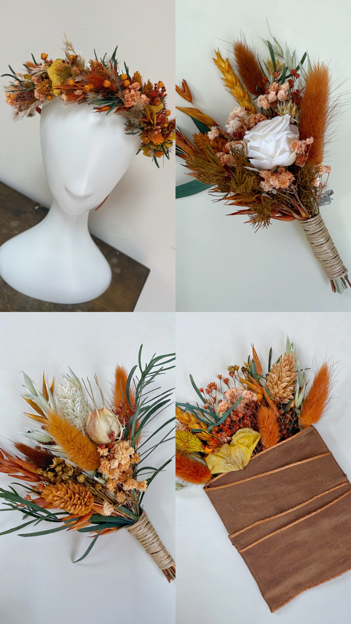 Bridal: overall width approx. 16”/40cm (including greenery/pampas feathers)